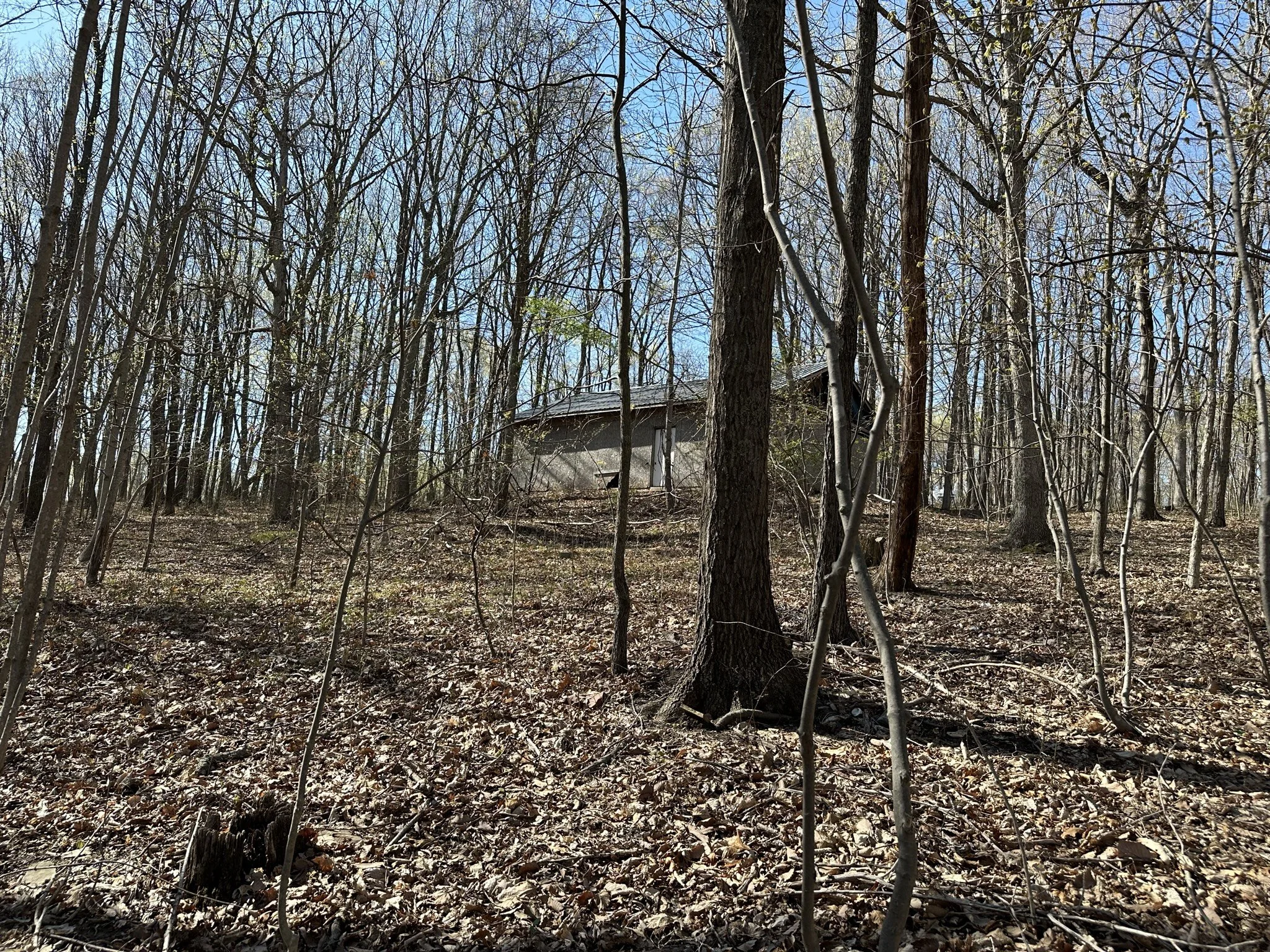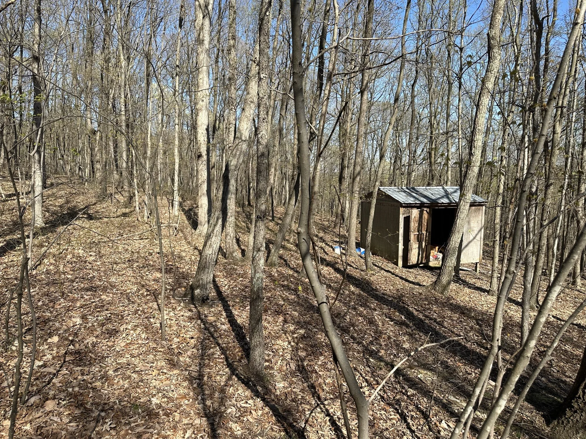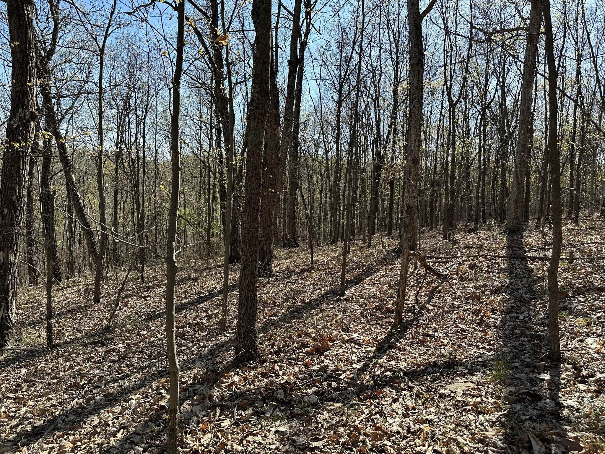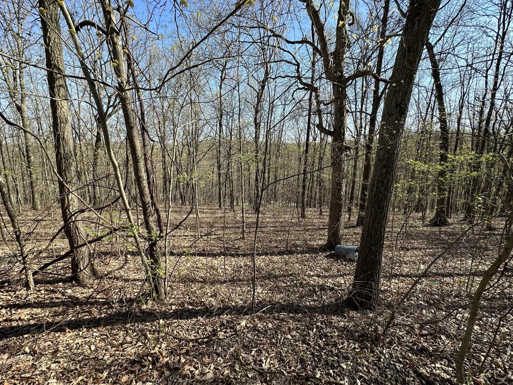 The land is primarily covered with mature hardwoods, creating a peaceful and secluded environment.