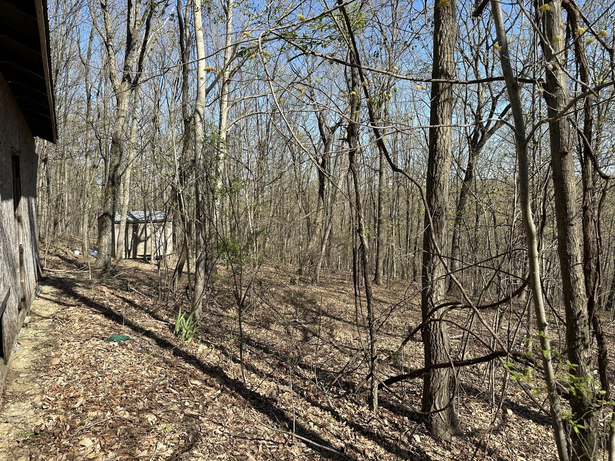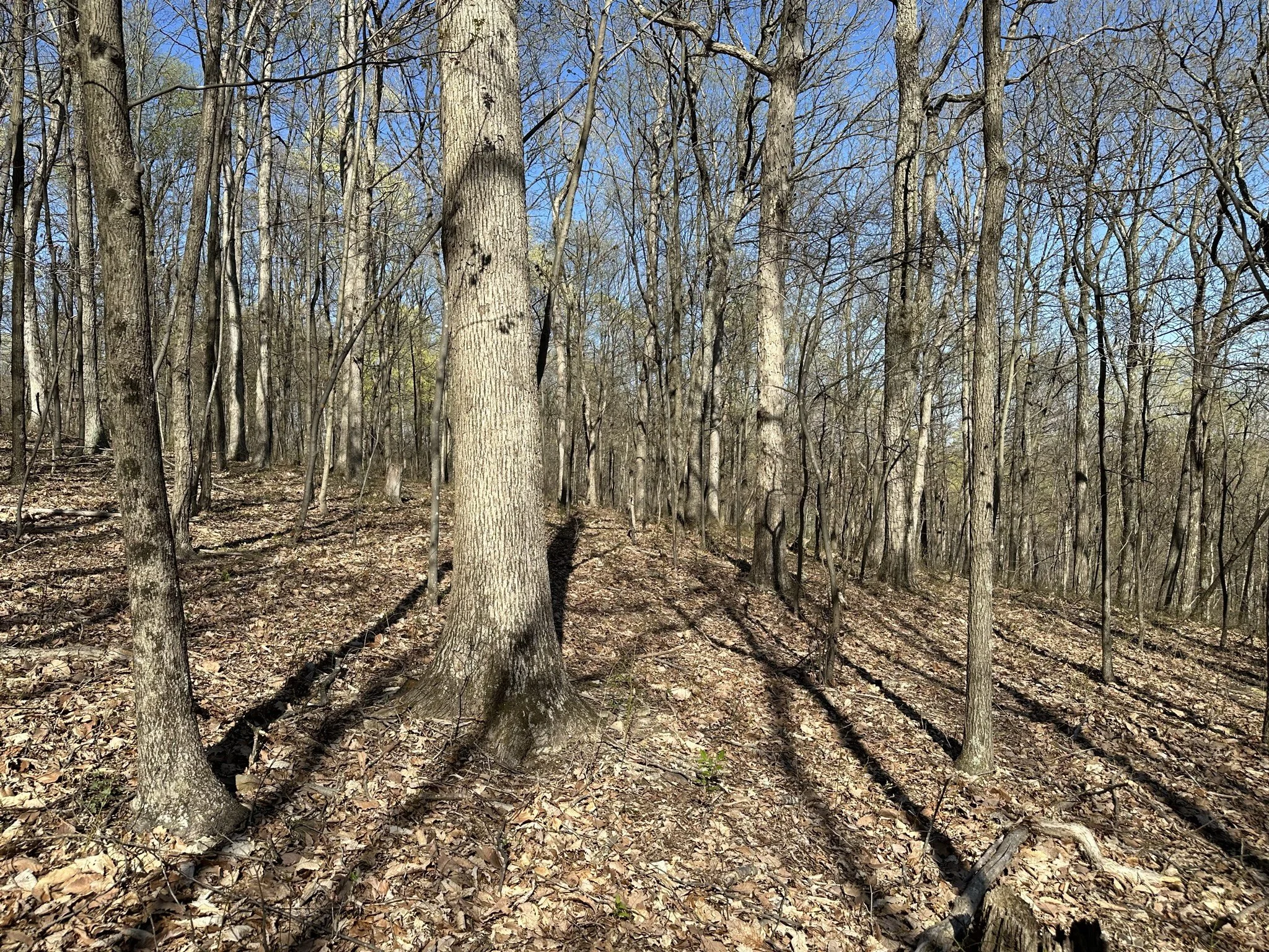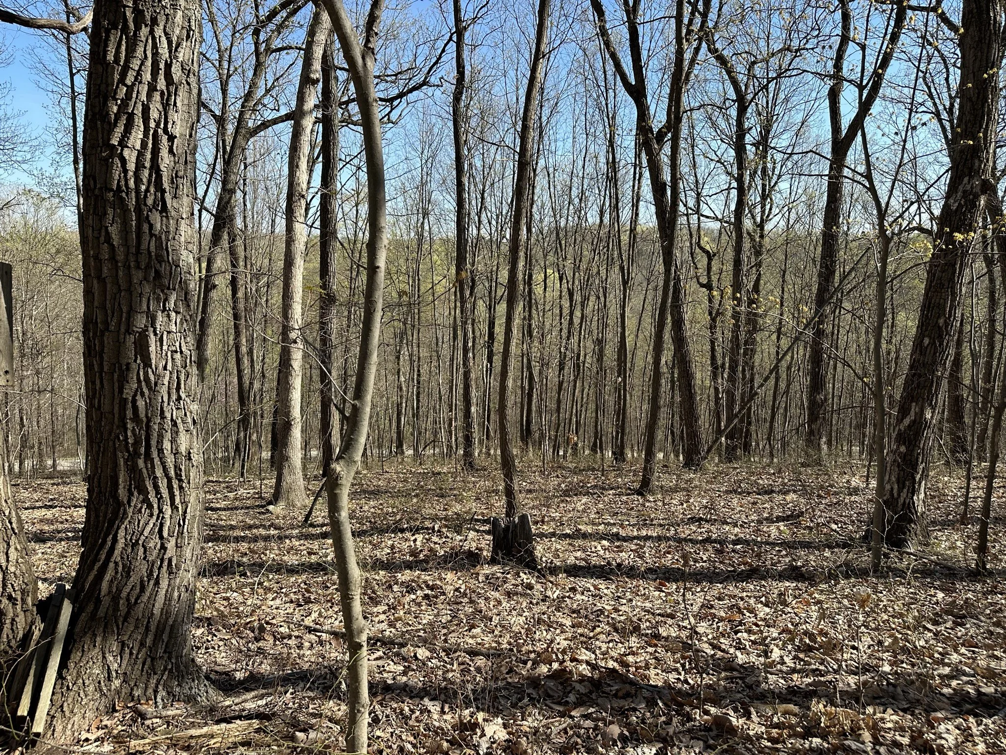The land is primarily covered with mature hardwoods, creating a peaceful and secluded environment.