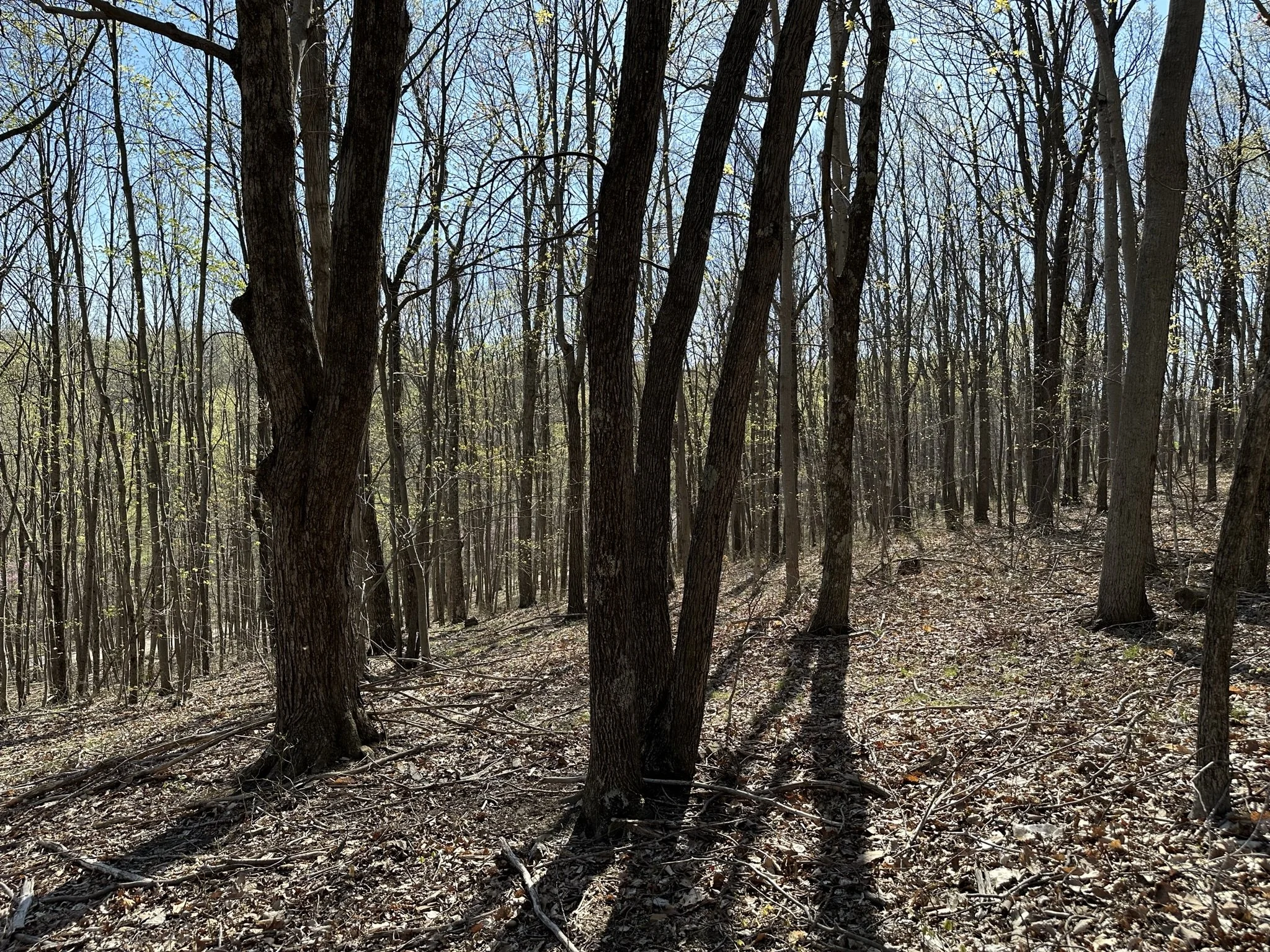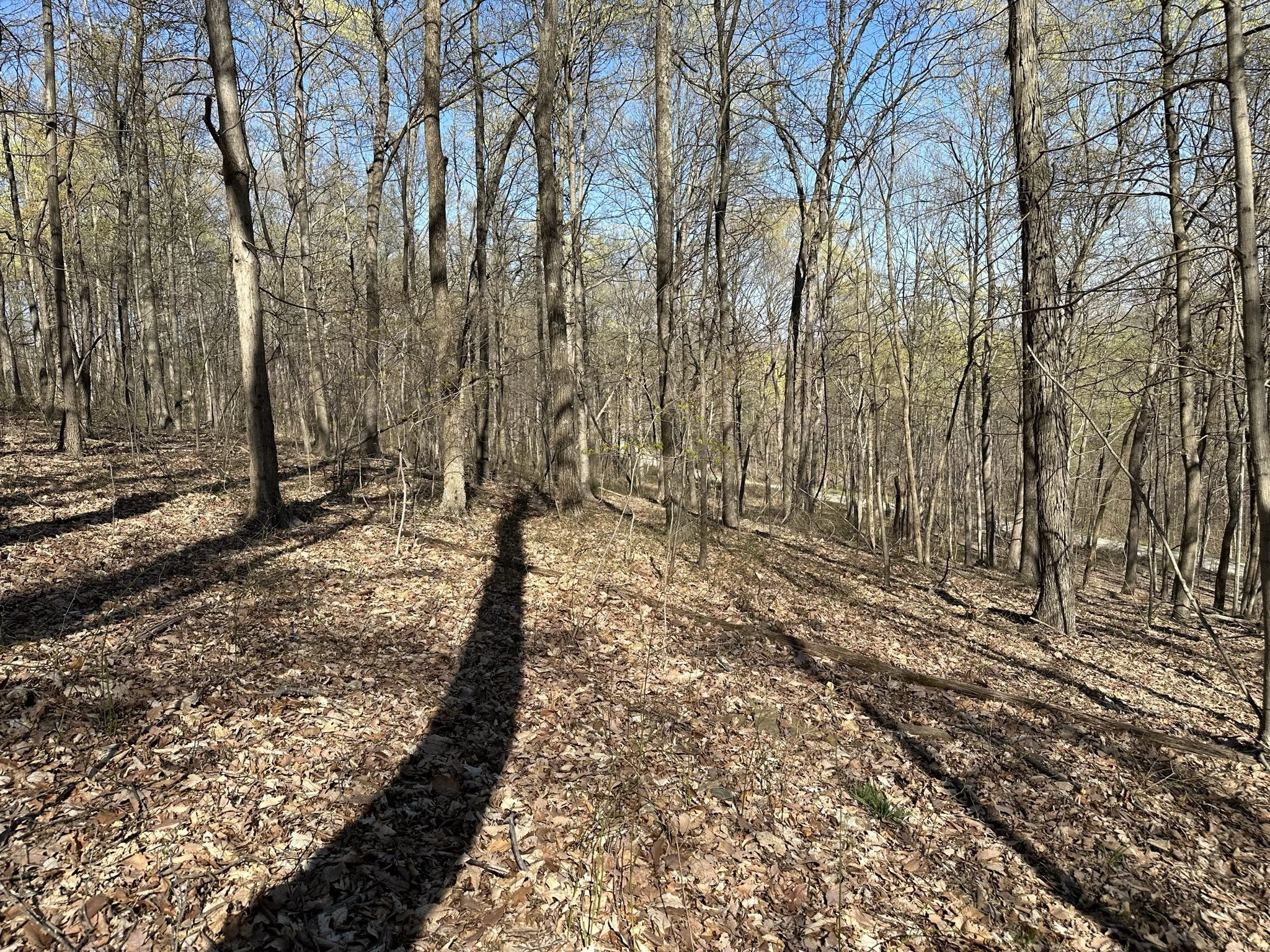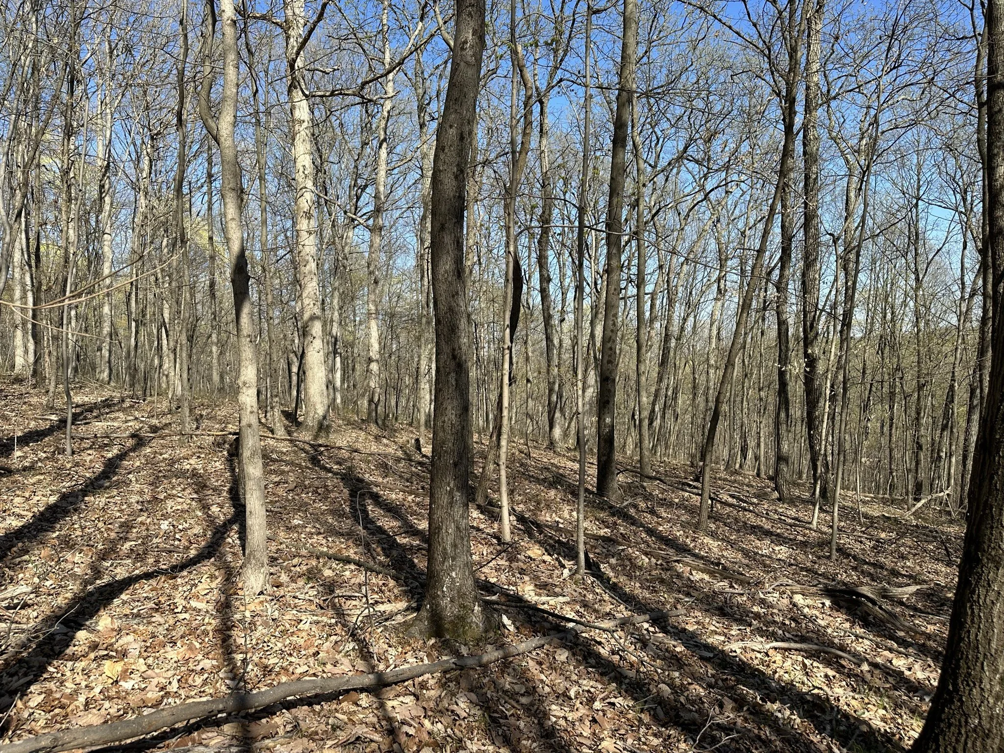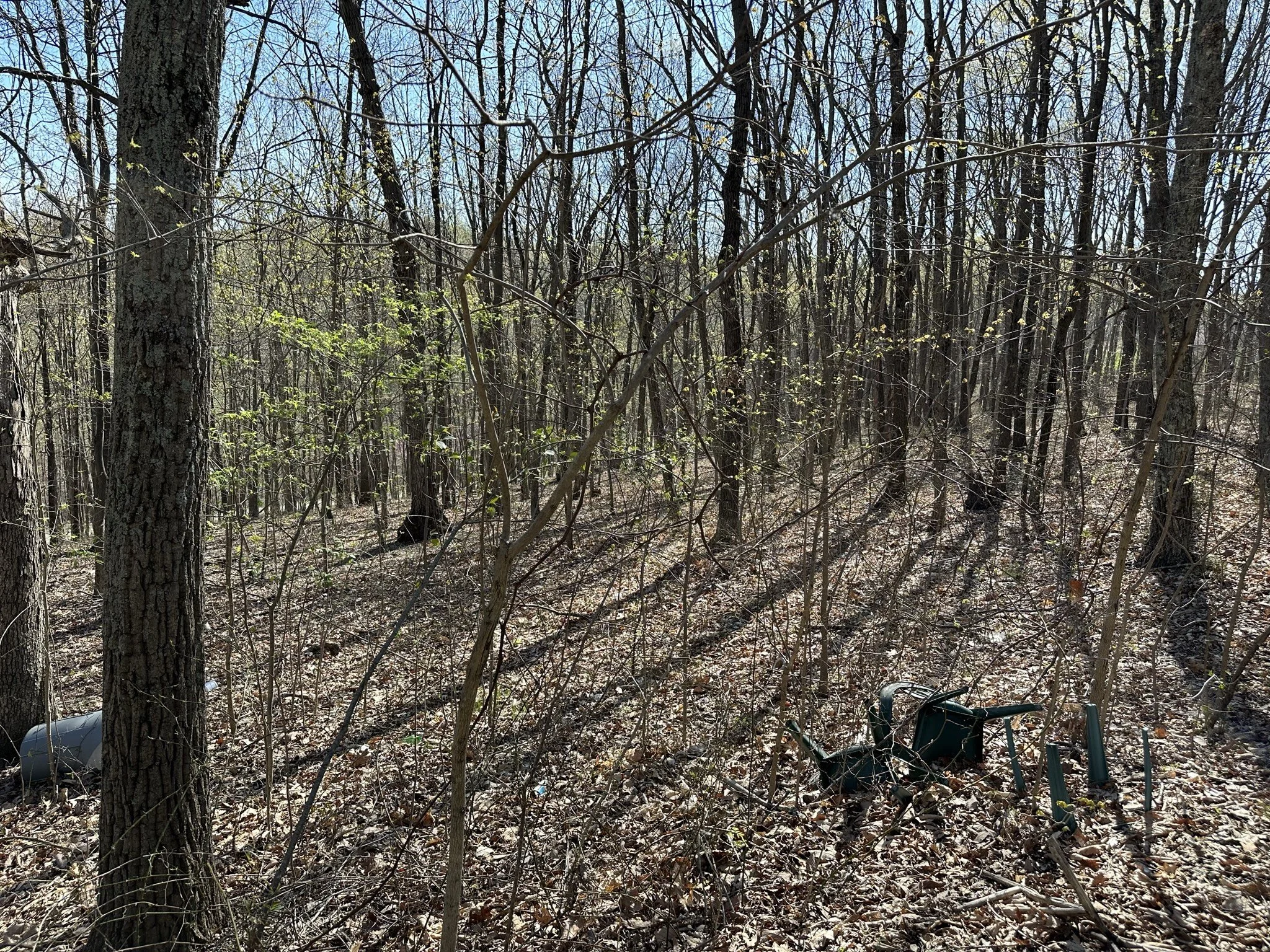 The land is primarily covered with mature hardwoods, creating a peaceful and secluded environment.